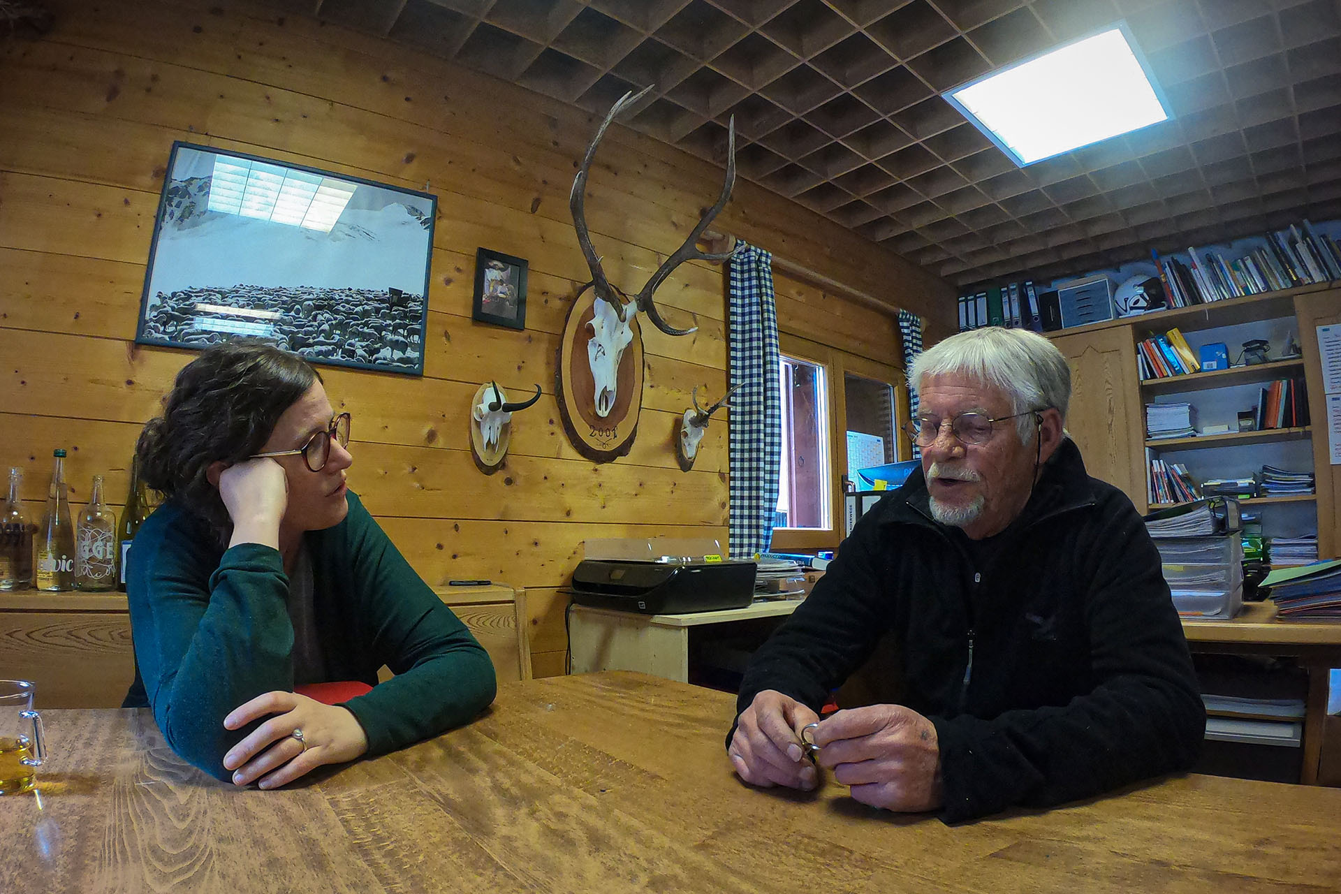 In Vernagt we are greeted by onlookers. “There are more spectators here than sheep,” mocks a drover. This does not stop him and everyone else from demonstratively waving their shepherd’s sticks for the photographers. Magdalena also knows what is expected of her here; that ordinary ski poles are the insignia of her office is no longer important. At the final tent party there is grilled food. We order lamb chops.