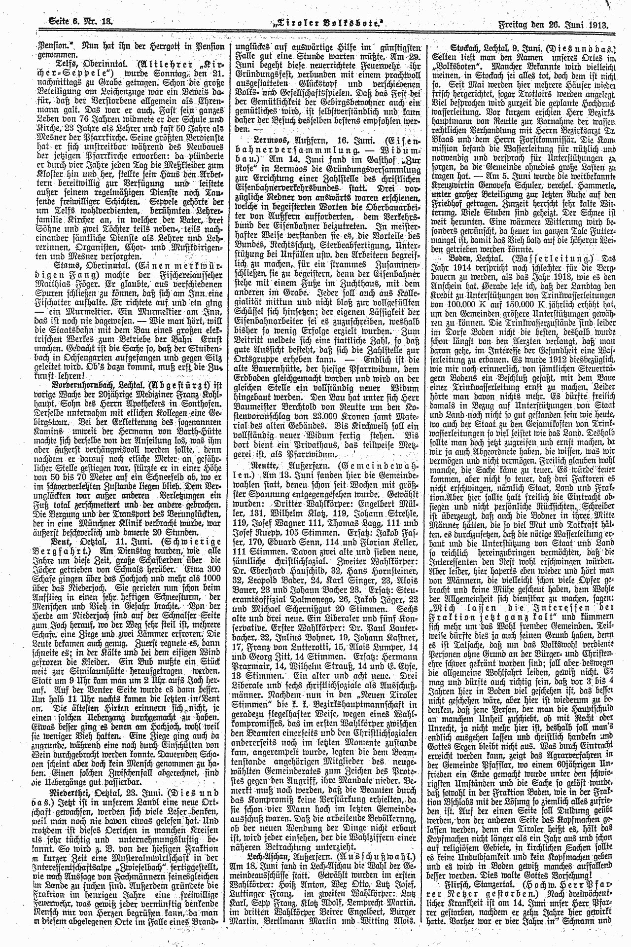 From: Tiroler Volksbote, Friday, June 26, 1913, page 6